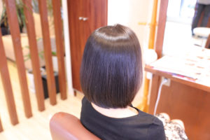 | 担当者からのワンポイントアドバイス | 今までブローをして頑張ってきましたが、雨の日はその努力も一歩外に出ると、元のクセがでる事に悩んでいました。 そこで初めての縮毛矯正をご提案。 綺麗にクセを伸ばすならアルカリ矯正ですが、ある程度のボリューム感を残すのは酸性矯正のほうが得意です。 そして自然なツヤもだしやすく、見た目がとても変わりますね。 クセでお悩みなら縮毛矯正も目的に合わせた仕上りに出来ますのでご相談ください。 |